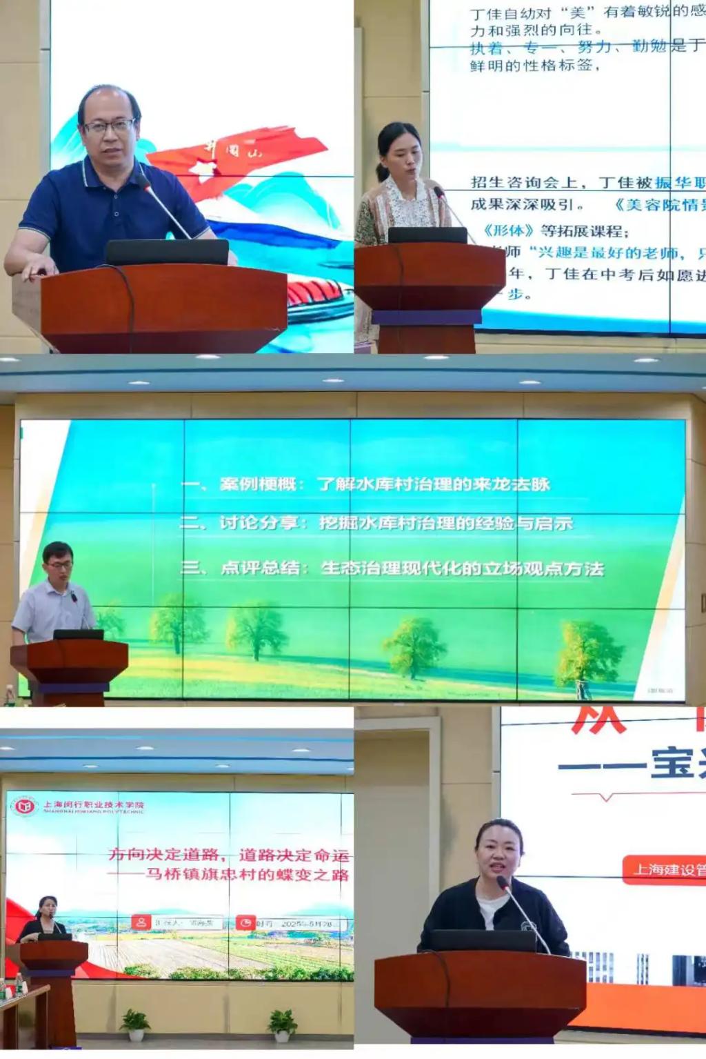 上海南湖职业技术学院周福振教授的《创新“三色”研学模式 坚定文化自信》,借研学之旅搭建文化桥梁,让历史文脉在体验中延续,文化自信在探索中生长;上海现代化工职业学院王瑞阁老师的《破茧成蝶 点水成金——生态文明思想引领美丽乡村建设》,以金山区水库村的治理实践为窗口,生动诠释了“绿水青山就是金山银山”的发展理念,让生态价值转化为可触摸、可感知的美丽经济与幸福图景;上海闵行职业技术学院邱海燕老师的《方向决定道路,道路决定命运——马桥镇旗忠村的蝶变之路》,以旗忠村的生动实践勾勒发展脉络,深刻彰显道路自信的强大生命力,更启示我们在时代浪潮中需锚定方向、行稳致远;上海浦东职业技术学院蒋理老师的《兴趣引领 匠心筑梦》,以本校毕业生丁佳的成长故事为切入点,深入探讨如何打破职业教育刻板印象,这一鲜活范本,如灯塔般指引职业院校学子以热爱为帆、以匠心为舵,在技能成长之路上笃定前行;上海建设管理职业技术学院马院书记张丹的《从“忧居”到“优居”——宝兴里旧改的民生答卷》,深度解码宝兴里旧改这场浸润着民生温度的城市更新实践,将群众“盼安居、求宜居”的殷切期盼,化作“居有其屋、居有美屋”的鲜活现实,生动书写了一份饱含烟火温情与人文关怀的民生新篇。这些案例覆盖文化、生态文明、道路自信、乡村振兴、职业发展、民生等多个领域,展现了思政课案例教学的丰富性与多元性。